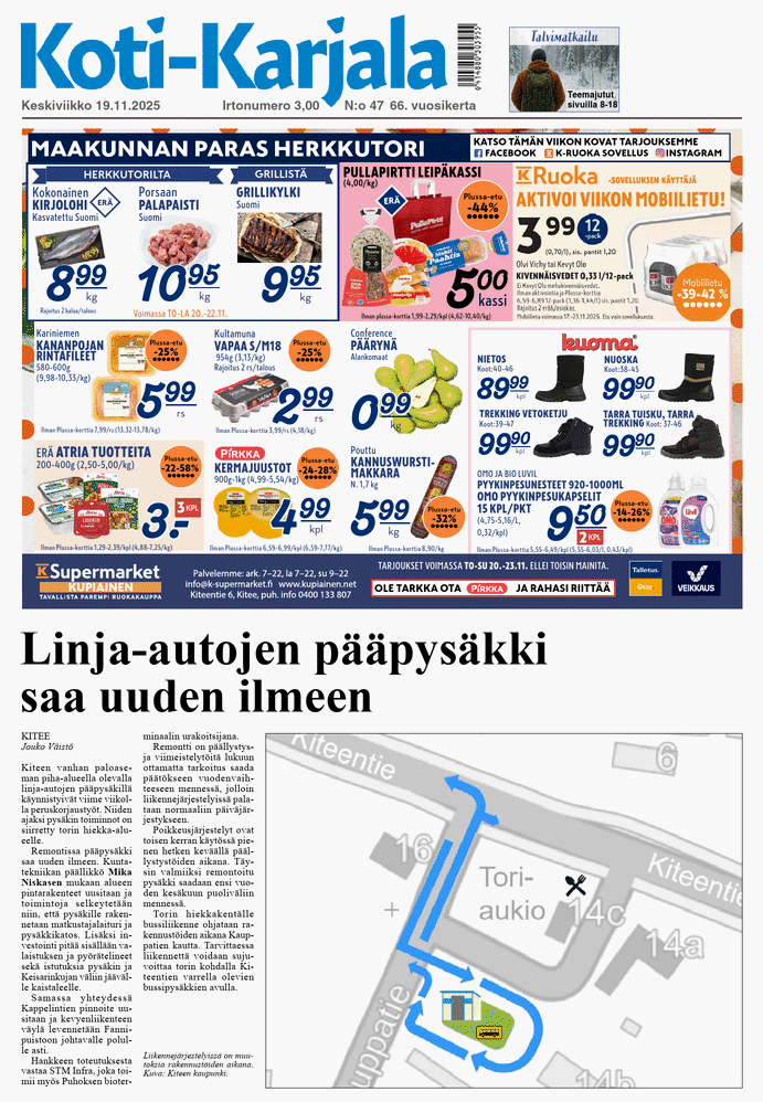 Maansiirtotyöt Kiteen vanhan palotalon edustalla olevalla linja-autojen pääpysäkillä käynnistyivät kuluvan viikon alussa. Vuodenvaihteeseen jatkuvan remontin ajaksi bussien pääpysäkki on siirretty torin hiekkakentälle.